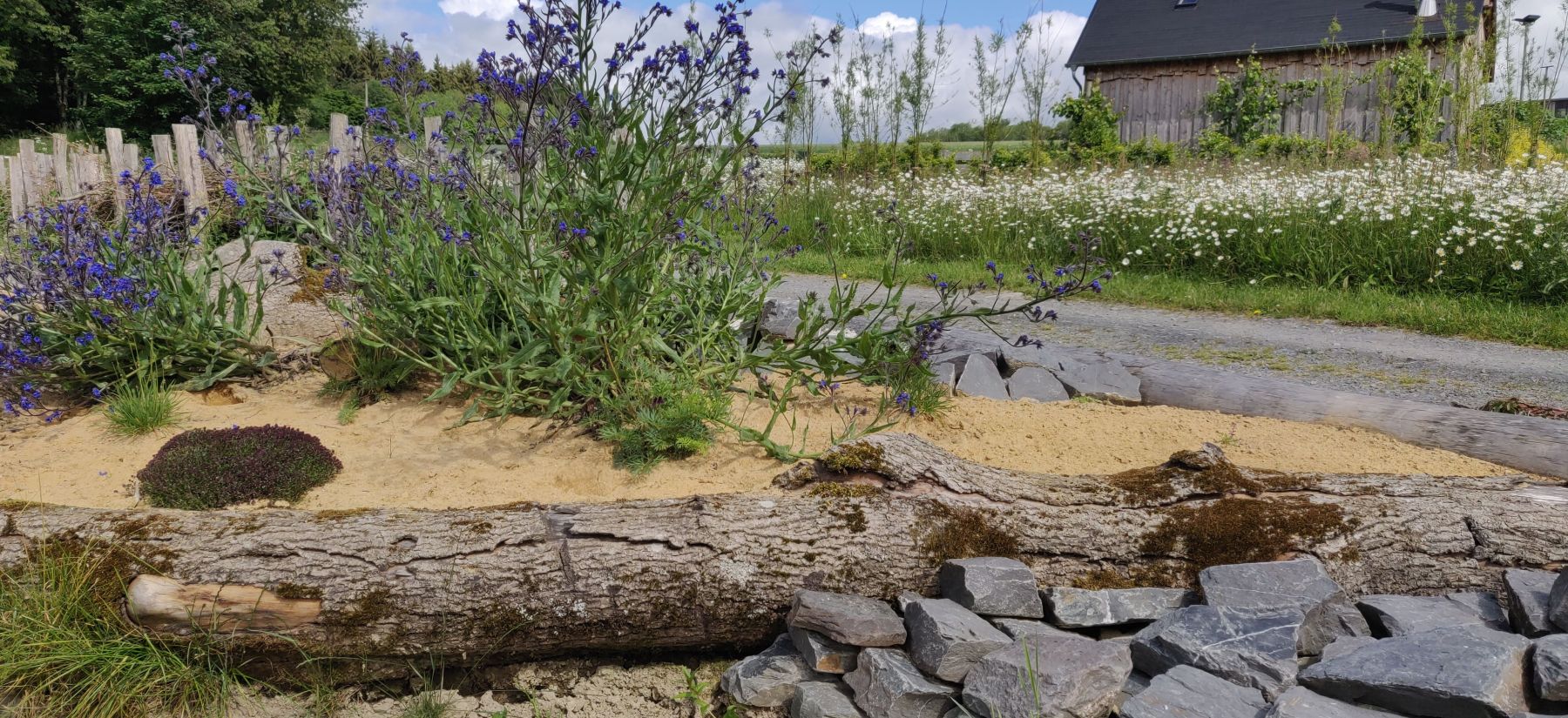 Hier bietet sich eine Umgestaltung in eine Blumenwiese an. Diese ist nicht nur schön anzusehen, sondern eignet sich auch sehr gut dazu, seinen Beitrag zum Erhalt der Insektenvielfalt beizutragen. Ein positiver Nebeneffekt ist, dass diese nur ein- bis zweimal im Jahr gemäht werden muss und im Vergleich zu einer konventionellen Grünfläche eine erhebliche Zeitersparnis bedeutet.